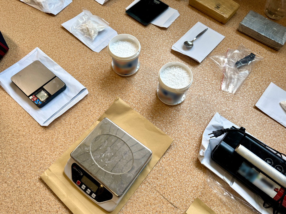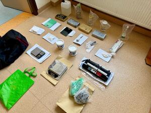 Podczas przeszukania mieszkania, które pełniło funkcję magazynu narkotykowego, policjanci zabezpieczyli ogromne ilości środków odurzających i substancji psychotropowych. Łącznie było to prawie 150 kilogramów narkotyków, w tym: około 130 kg marihuany, 6 kg kokainy, 3000 tabletek ekstazy oraz 3 litry aminy i ponad 12 kg innych substancji. Dodatkowo policjanci zabezpieczyli znaczną ilość półproduktów do wytwarzania środków odurzających.