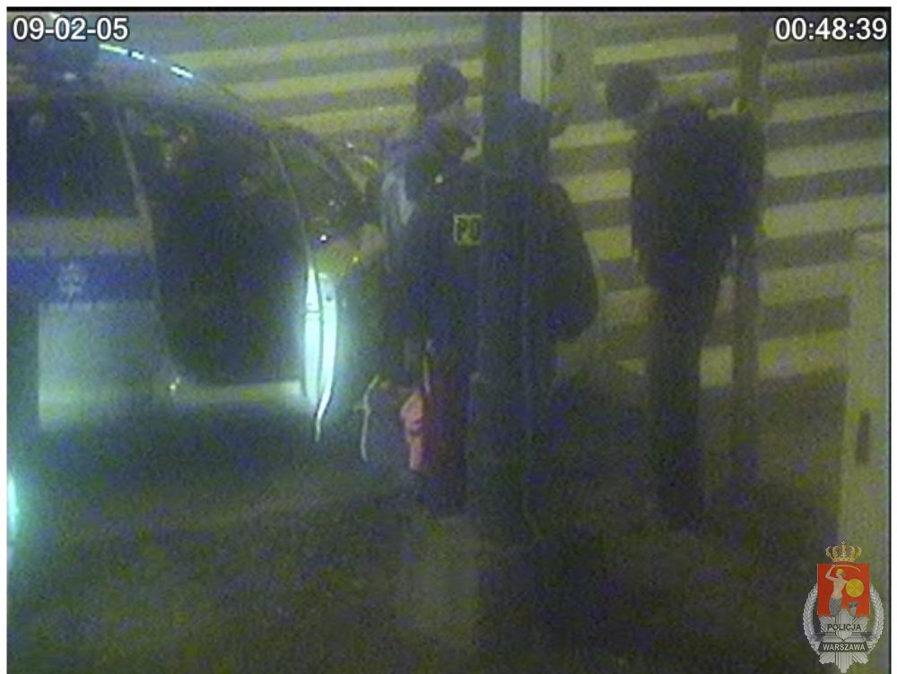 Szybko ustalono, ze sprawcy skradli radio za 800 złotych i torbę podróżną. Wezwano przewodnika z psem do tropienia śladów. W tym czasie inny północnopraski patrol Policji 20 minut później na ulicy Targowej rozpoznał przechodzących przez przejście dla pieszych włamywaczy. Zatrzymano 29–letniego Mariusza W., 27–letniego Sławomira M. oraz 21–letnią Katarzynę D. Cała trójka przyznała się do wszystkiego, wskazała także salon gier, w którym jego właściciel odkupił od nich skradzione z forda mustanga radio za kwotę 150 złotych.