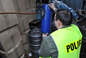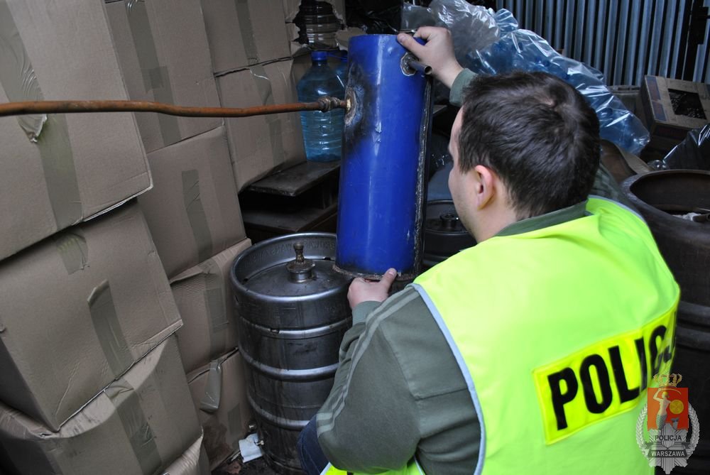Policjanci pojechali sprawdzić i przeszukać gospodarstwo mężczyzny. Przedmioty świadczące o nielegalnym wytwarzaniu wysokoprocentowych napojów, odnaleziono w gospodarskim chlewiku. W ciemnym kącie stała wciśnięta beczułka po piwie, sprytnie przerobiona na urządzenie, wytwarzające bimber. Obok znajdowało się 50 litrowa bańka z zacierem.