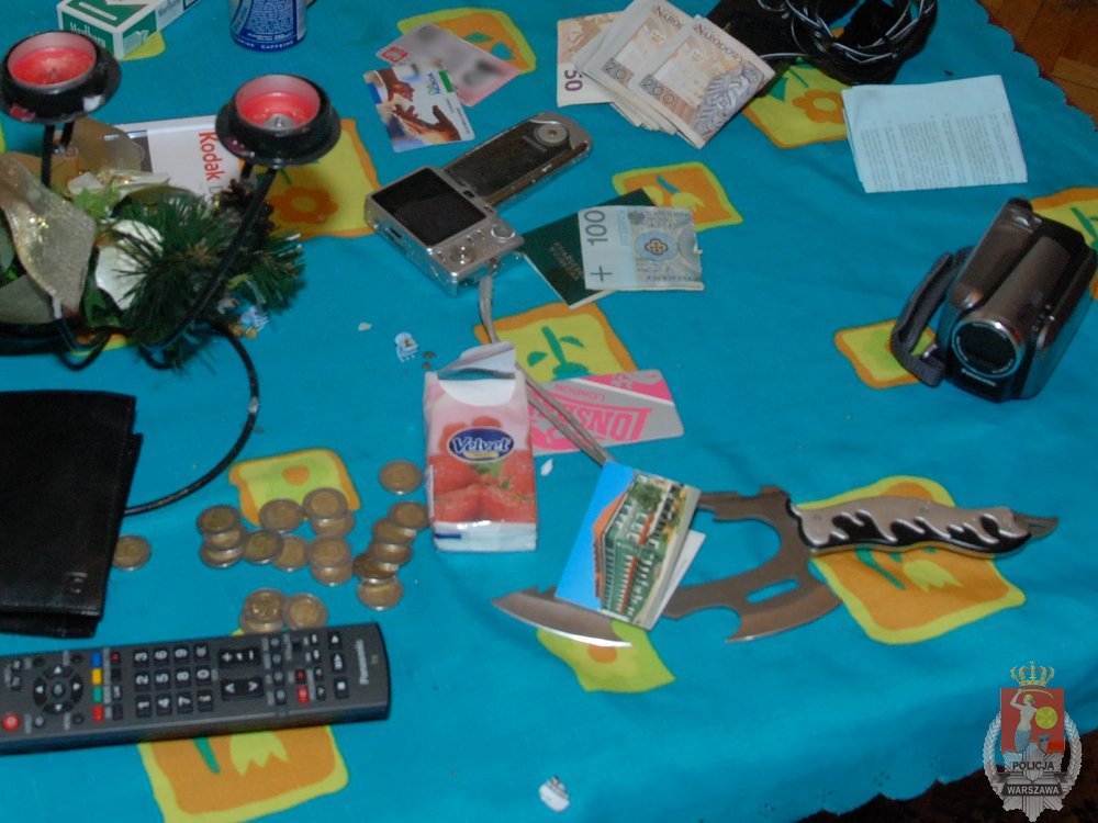 Podczas przeszukania funkcjonariusze znaleźli 9 sztuk amunicji, ponad 30 gramów amfetaminy, 3 gramy kokainy, 50 sztuk tabletek ekstazy, banderole z polskimi znakami akcyzy do wyrobów alkoholowych oraz zakrętki różnego rodzaju wódek i przenośny komputer, który okazał się kradziony w województwie łódzkim w 2007 roku. Ponadto zabezpieczono elementy umundurowania policyjnego i karabinek pneumatyczny.
