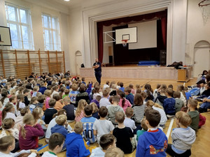 Policjant z Woli przeprowadził spotkanie w Szkole Podstawowej nr 386. Celem tego spotkania było propagowanie zasady bezpieczeństwa w kontakcie z osobą nieznajomą. Prowadzący pogadankę uświadomił uczniom, że mają prawo czuć się bezpiecznie w domu, w szkole i na ulicy.