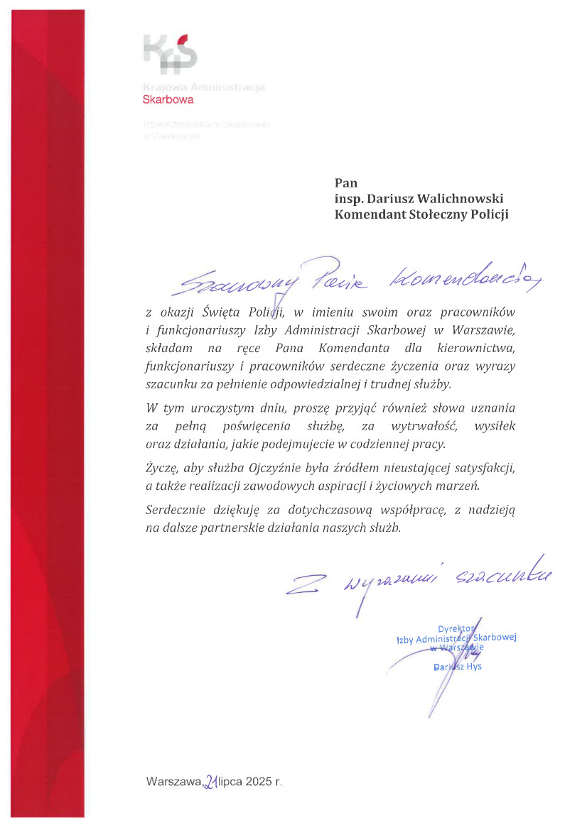 Życzenia z okazji Święta Policji - Krajowa Administracja Skarbowa - Podziękowania i listy