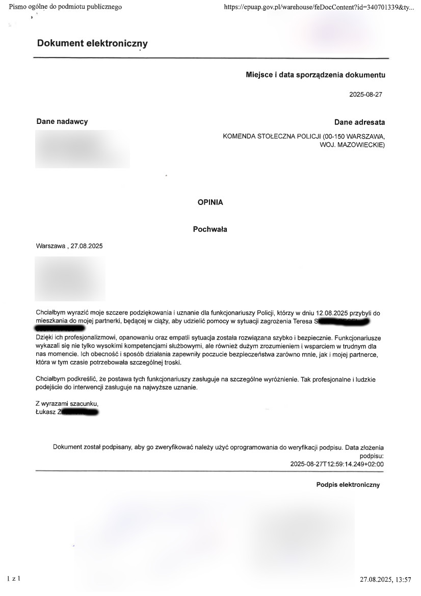 Podziękowanie dla policjantów - Podziękowania i listy -