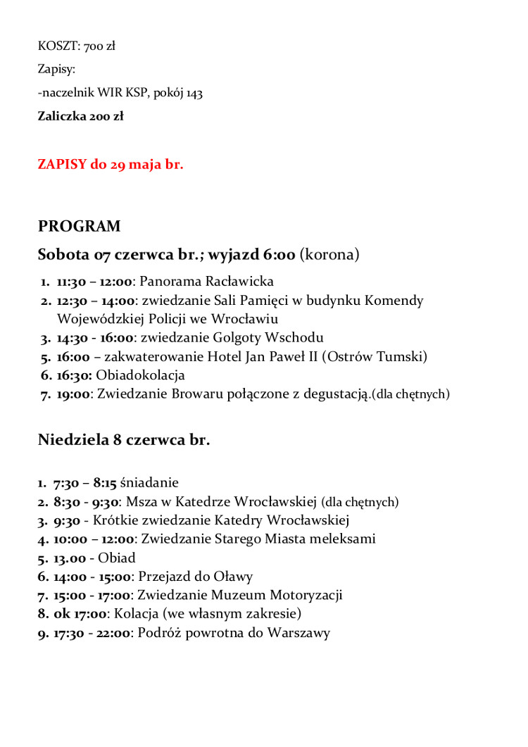 Wycieczka historyczna do Wrocławia i Oławy - Wiadomości