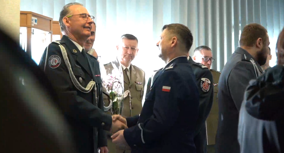 Przemawiał również mł. insp. w stanie spoczynku Sławomir Świderski, były komendant lotniskowego komisariatu, który wspomniał czas kiedy przyjmował do służby w Policji młodego Mariusza Tkacza. On również życzył przyszłym emerytom wszystkiego dobrego na nowej drodze życia.