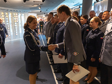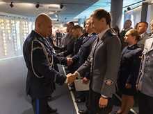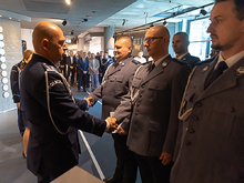 Zastępca Komendanta Stołecznego Policji inspektor Robert Frąckowiak w asyście Komendanta Komisariatu Rzecznego Policji młodszego inspektora Marka Gago, Komendanta Komisariatu Policji Portu Lotniczego młodszego inspektora Ewy Kaim, Komendanta Komisariatu Kolejowego Policji młodszego inspektora Pawła Salamagi oraz Komendanta Komisariatu Policji Metra Warszawskiego młodszego inspektora Jarosława Zgierskiego wręczył funkcjonariuszom przyznane przez Ministra Spraw Wewnętrznych i Administracji odznaki resortowe oraz akty mianowania na wyższe stopnie służbowe.