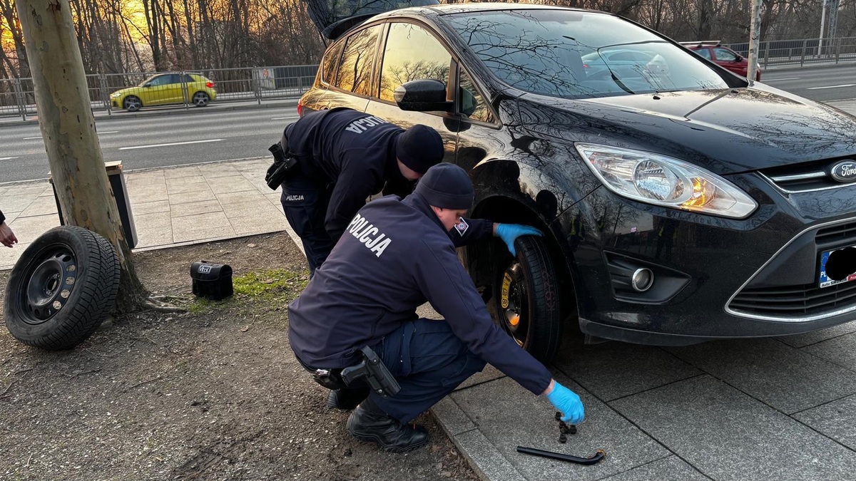 Kobieta udrażniając drogę przejeżdżającej karetce pogotowia wjechała na krawężnik, przez co uszkodziła koło w swoim samochodzie. Przejeżdżający obok policjanci zauważyli, że kobieta potrzebuje pomocy więc bez zastanowienia zaproponowali pomoc. Podnieśli lewarkiem samochód osobowy i wymienili niesprawne koło.
