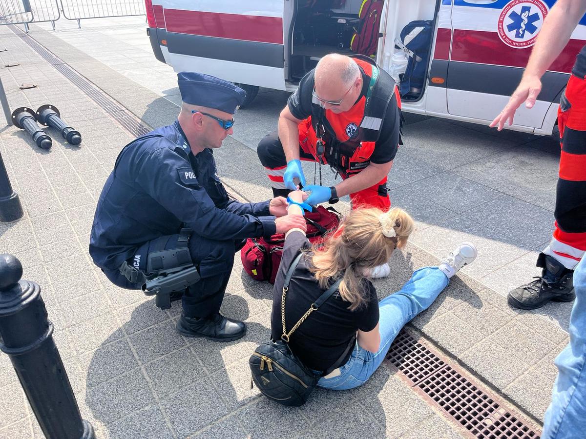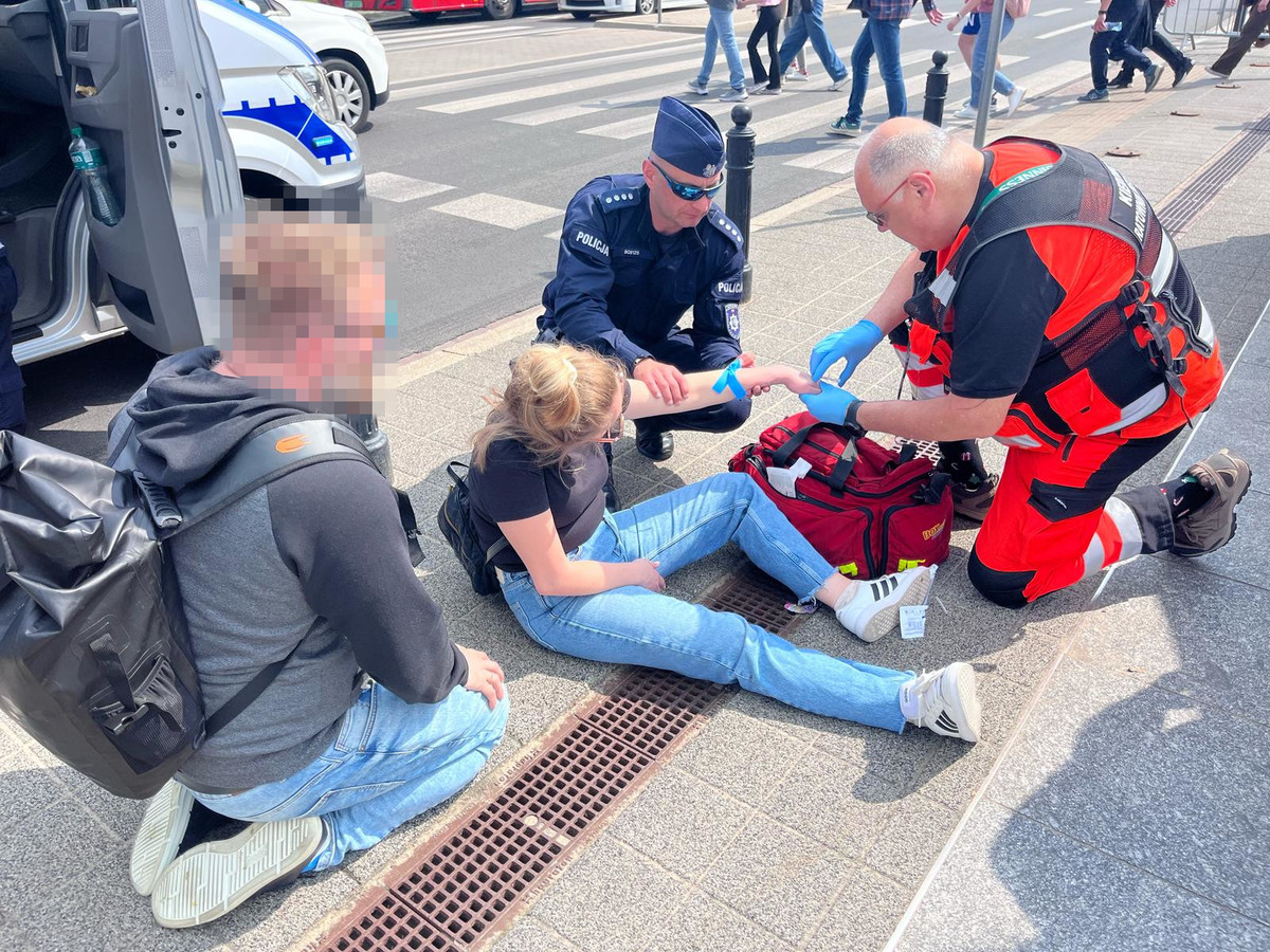 Funkcjonariusze natychmiast przystąpili do udzielania pierwszej pomocy – zaopatrzyli rany i starali się uspokoić dziecko. Wezwali również zespół ratownictwa medycznego. Po przybyciu na miejsce, ratownicy stwierdzili u dziecka otarcia i stłuczenie głowy, które nie zagrażały jego życiu. Kobieta doznała urazu łokcia i została przewieziona do szpitala na dalsze badania.