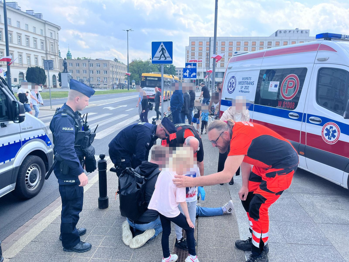 Do zdarzenia doszło w centrum stolicy. Policjanci patrolujący jedną z ulic zostali poinformowani przez przechodnia o wypadku, który miał miejsce w pobliżu. Na miejscu zastali poszkodowaną kobietę, jej męża oraz dwójkę dzieci. Kobieta skarżyła się na silny ból ręki, a u jednego z dzieci widoczne były otarcia na twarzy.