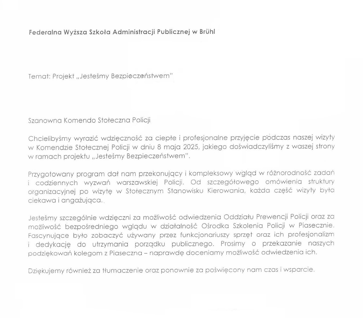 Do Oddziału Prewencji Policji w Warszawie wpłynęły podziękowania od organizatora wizyty studyjnej funkcjonariuszy niemieckiej Policji Federalnej.