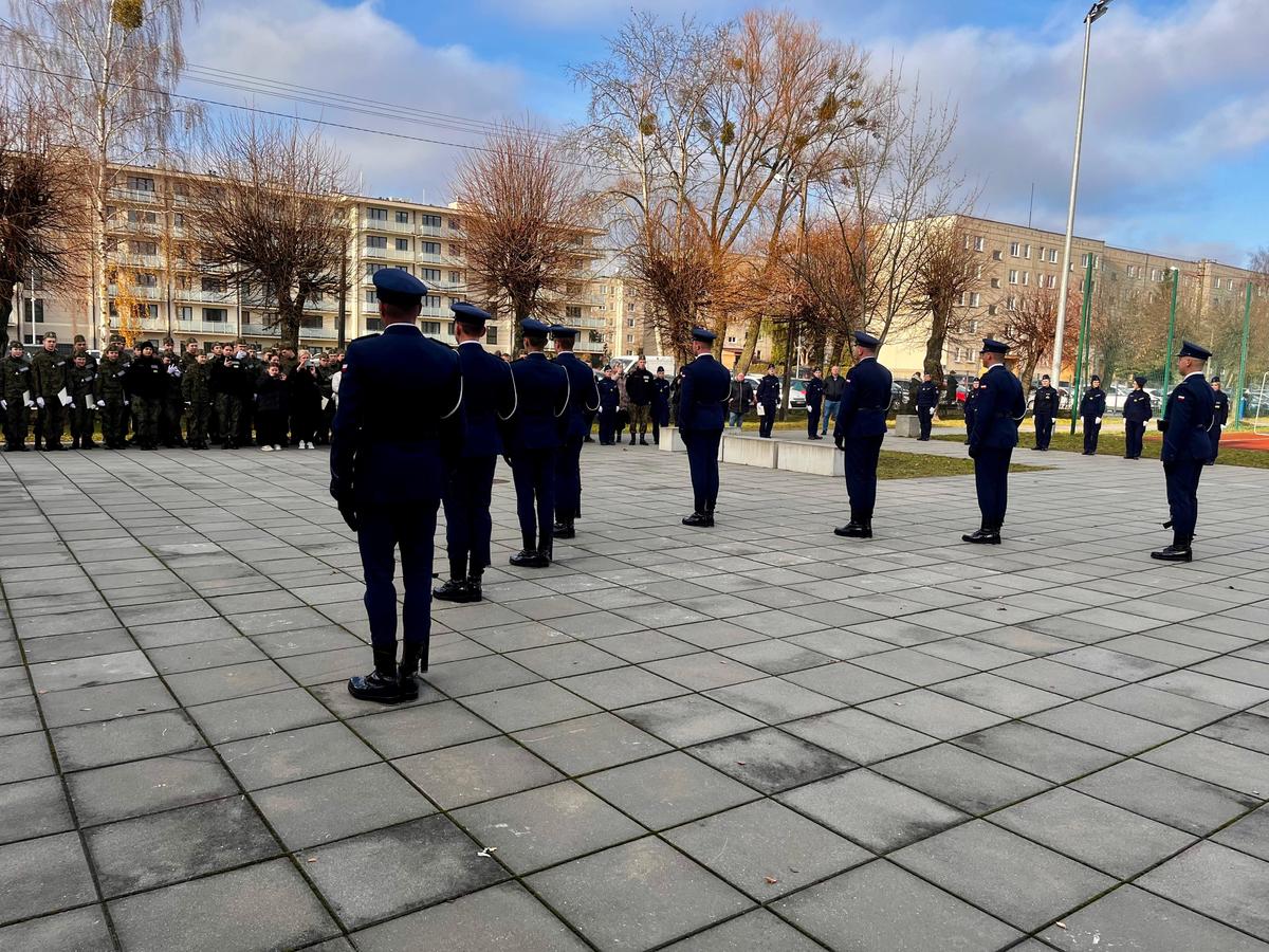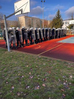W Zespole Szkół Zawodowych im. Marszałka Franciszka Bielińskiego w Górze Kalwarii w dniu 28.11.2025r. odbyły się obchody Dnia Kadeta. Podczas powyższego wydarzenia policjanci Oddziału Prewencji Policji w Warszawie przeprowadzili pokaz działania pododdziału zwartego Policji w oparciu o taktykę, a także pokaz musztry paradnej.