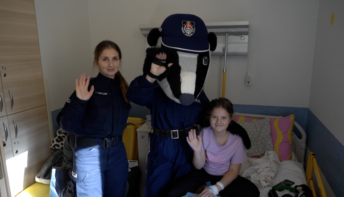 Stołeczni policjanci wraz z sierżantem Borsukiem odwiedzili najmłodszych przebywających w warszawskim szpitalu dziecięcym