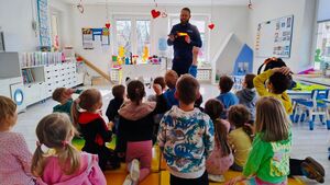 Jak się nie zgubić i kogo prosić o pomoc? Przedszkolaki z Przedszkola nr 421 w Warszawie przy ul. Cegłowskiej już znają odpowiedź na to pytanie. Podczas spotkania z policjantem dzieci dowiedziały się, jak zachować się w sytuacji zagubienia oraz do kogo mogą zwrócić się o pomoc, gdy znajdą się w nieznanym miejscu lub stracą z oczu opiekuna. Funkcjonariusz wyjaśnił, że w takiej sytuacji najważniejsze jest zachowanie spokoju i pozostanie w jednym miejscu, aby ułatwić odnalezienie dziecka. Podkreślił również, że o pomoc należy zwracać się wyłącznie do osób zaufanych, takich jak policjant, strażnik miejski, pracownik sklepu czy rodzic z dzieckiem, unikając kontaktu z osobami obcymi, które nie wzbudzają zaufania.