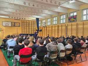 W trakcie spotkania policjant przedstawił również charakter i specyfikę pracy funkcjonariuszy różnych pionów. Omówił codzienne obowiązki policjantów, wskazując na ich odpowiedzialność, konieczność podejmowania szybkich decyzji oraz gotowość do działania w sytuacjach wymagających opanowania i profesjonalizmu. Podkreślił także znaczenie współpracy zespołowej, etyki zawodowej oraz ciągłego doskonalenia umiejętności.