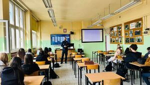 Spotkanie z bielańskim profilaktykiem w Zespole Szkół nr 31 im. Jana Kilińskiego w Warszawie było dla młodzieży okazją do zdobycia wiedzy zarówno o specyfice służby w Policji, jak i o odpowiedzialnych postawach w codziennym życiu. Funkcjonariusz w przystępny sposób przybliżył wymagania stawiane kandydatom oraz możliwości rozwoju zawodowego w tej formacji.