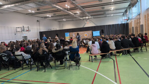 Policjantka zajmująca się profilaktyką społeczną i policjantka z wydziału ds. nieletnich i patologii ochockiej komendy wzięły udział w dzielnicowej debacie o przemocy rówieśniczej zorganizowanej w Szkole Podstawowej nr 66 przy ul. Przepiórki.