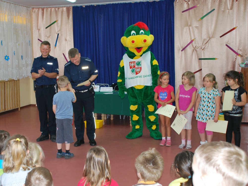 76 przedszkolaków musiało wykazać się zarówno wiedzą z zakresu przepisów ruchu drogowego oraz zaprezentować swoje umiejętności na torze rowerowym. W zmaganiach dzieciom pomagał Smok "Wuzetek", czyli maskotka Powiatu Warszawskiego Zachodniego. Wszystkie dzieci dzielnie zdały egzamin i uzyskały "Kartę Małego Rowerzysty dla Przedszkolaka" oraz odblaskowe upominki i kodeksy rowerzysty ufundowane przez Starostwo Powiatu Warszawskiego Zachodniego oraz Wojewódzki Ośrodek Ruchu Drogowego w Warszawie. Wszystkim dzieciom serdecznie gratulujemy!