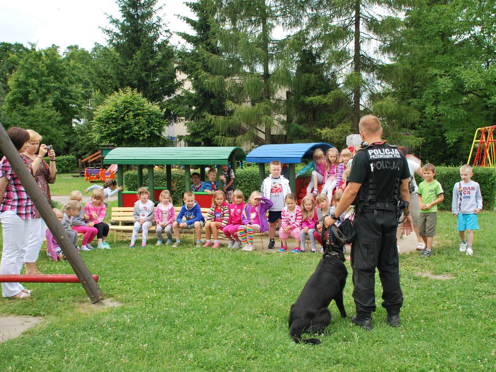 Po zdanym egzaminie dzieci miały jeszcze możliwość zobaczyć radiowóz, a także zapoznać się z pracą przewodnika psa służbowego, który opowiedział dzieciom o bezpiecznym zachowaniu w sytuacji kontaktu z nieznanym pieskiem.