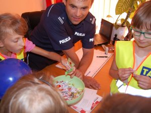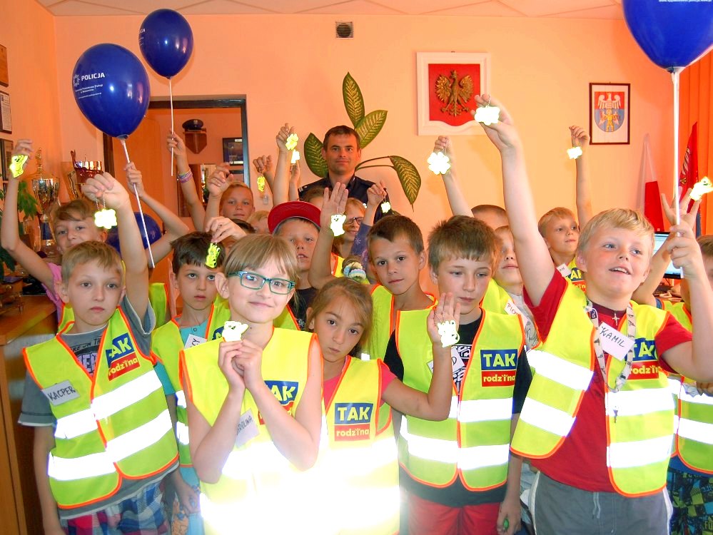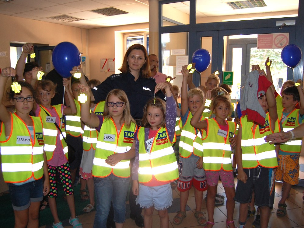 Niecodzienną atrakcją dla dzieci było odbicie przez każdego z nich na kartce własnego indywidualnego i niepowtarzalnego odcisku palca, czyli linii papilarnych. Każdy uczestnik naszej wycieczki otrzymał też specjalny odblask z logo Komendy Powiatowej Policji w Wołominie oraz pamiątkowe balony.