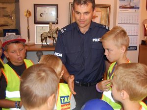Wczoraj wołomińscy policjanci spotkali się w Komendzie Powiatowej Policji w Wołominie z młodszymi mieszkańcami Wołomina, uczestnikami Warsztatów Edukacyjno – Rekreacyjnych „Wakacyjny Wołomin – tydzień przygód z OPS” oraz „Lata w miescie”