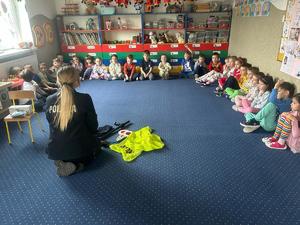 Przedszkolaki poznają zawód policjanta i uczą się bezpieczeństwa na drodze