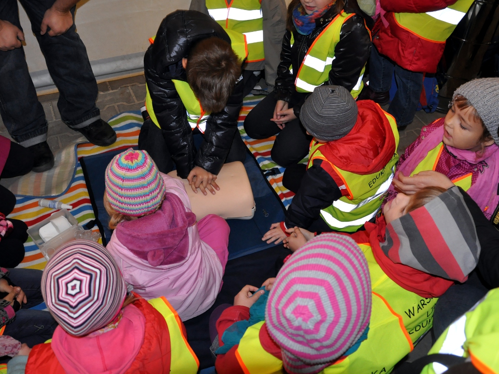 Praktyczną część zajęć w tramwaju współczesnym prowadzą policjanci z Komendy Stołecznej Policji, a także pracownicy Nadzoru Ruchu TW. Pokaz udzielania pierwszej pomocy prezentują ratownicy z Warszawskiej Grupy Wysokościowej s12.