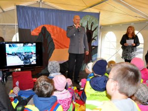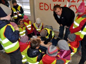Na zakończenie lekcji dzieci otrzymują kamizelki odblaskowe oraz materiały edukacyjne, utrwalające zdobytą wiedzę.