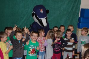 Policyjny borsuk oraz wołomińscy funkcjonariusze odwiedzili wczoraj dzieci ze Szkoły Podstawowej nr 1 oraz nr 3 w Ząbkach. Celem spotkań profilaktycznych było promowanie zasad bezpieczeństwa wśród najmłodszych. Stołeczna maskotka budziła niezwykłe emocje milusińskich: radość, zachwyt, chęć przytulenia się lub pociągnięcia za borsuczy wąs. Zadaniem borsuka było sprawdzić wiedzę dzieci i przypomnieć im najważniejsze zasady dotyczące bezpieczeństwa na drodze, w kontakcie z osobą obcą , agresywnym zwierzęciem. Wiedza dzieci była imponująca. Funkcjonariusze i borsuk przypominali o przestrzeganiu tych zasad każdego dnia.