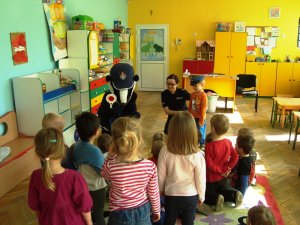 Policjanci wraz z maskotką Komendy Stołecznej Policji – borsukiem gościli w Przedszkolu przy ulicy Sabały w warszawskich Włochach. Była to doskonała okazja, aby poprzez zabawę przypomnieć najmłodszym o podstawowych zasadach bezpieczeństwa w domu, na podwórku oraz na ulicy.