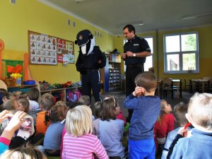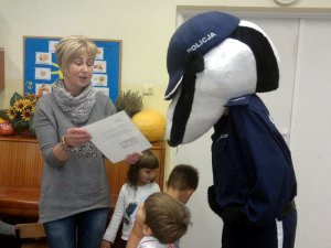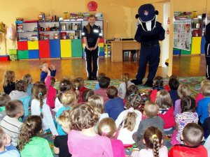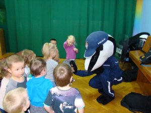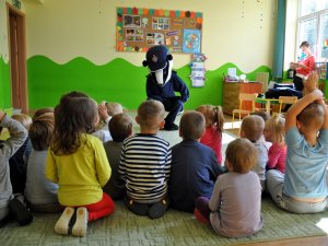 Policjantka z legionowskiej komendy odwiedziła dzieci z przedszkola w Chotomowie. W spotkaniu udział wzięła także maskotka Komendy Stołecznej Policji- Borsuk. Wszystkie grupy wychowanków przedszkola- 140 dzieci zapoznało się z zasadami bezpieczeństwa zarówno w ruchu drogowym jak i w miejscu zamieszkania. Wiele pytań najmłodszych dotyczyło pracy policjantów.