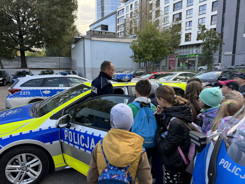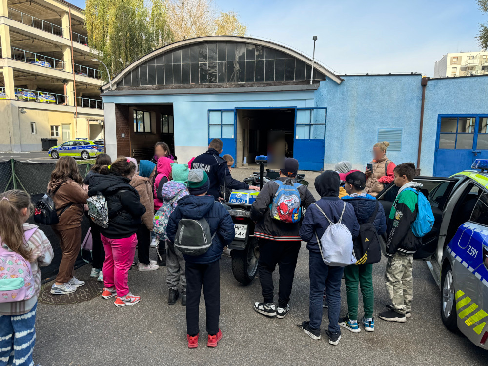 Uczniowie klasy III Szkoły Podstawowej nr 354 mieszczącej się przy ul. Otwockiej 3 w Warszawie odwiedzili dzisiaj Wydział Ruchu Drogowego KSP. Podczas spotkania zapoznali się z najważniejszymi zasadami ruchu drogowego oraz obejrzeli policyjny sprzęt, który służy policjantom w codziennej służbie.