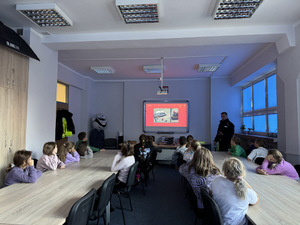 W trakcie spotkania omówiono wiele przydatnych zagadnień odnośnie bezpieczeństwa w ruchu drogowym oraz prawidłowego poruszania się, szczególnie w drodze do szkoły. Zwrócono uwagę, aby przed przejściem na drugą stronę jezdni upewnić się czy jest to bezpieczne.