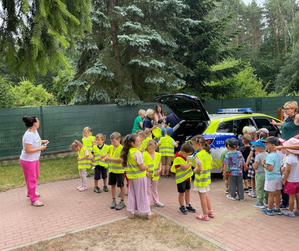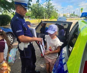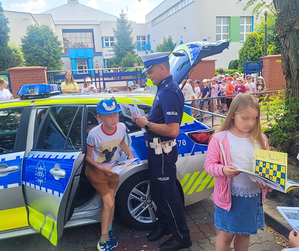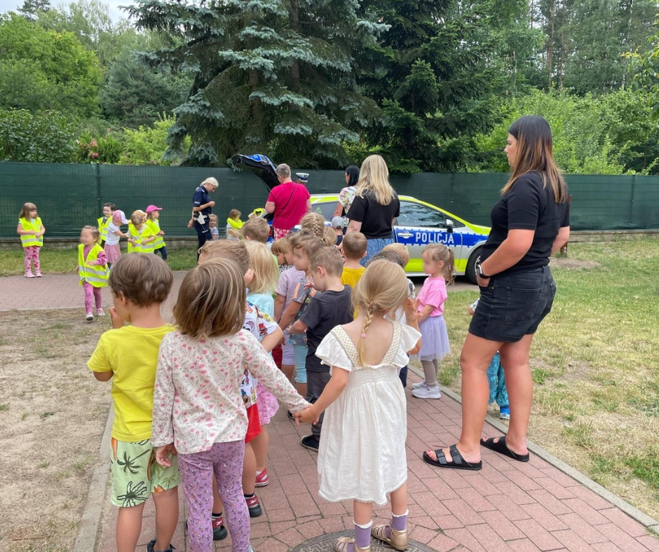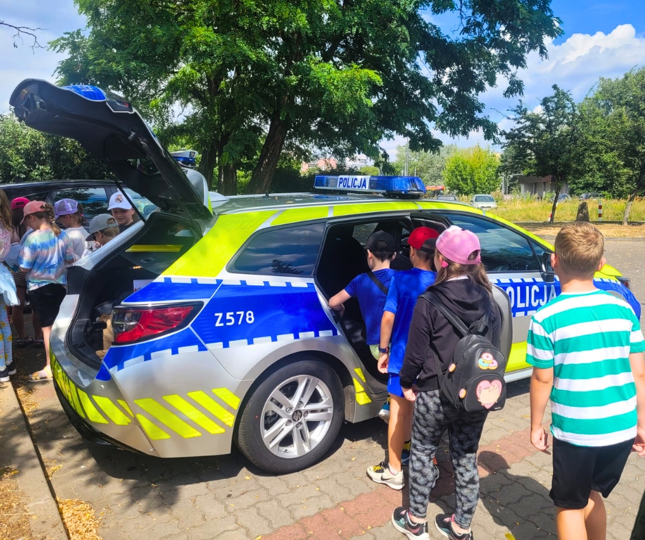 Nie brakuje również atrakcji – dzieci z zainteresowaniem oglądają policyjny sprzęt oraz radiowóz, do którego mogą zajrzeć, a nawet usiąść za kierownicą. Dużym zainteresowaniem cieszy się także specjalnie przygotowany przez funkcjonariuszy quiz wiedzy o bezpieczeństwie w ruchu drogowym. Dzieci z dużym zaangażowaniem biorą udział w zabawie, a zdobyta wiedza z pewnością przyda im się podczas letnich przygód.