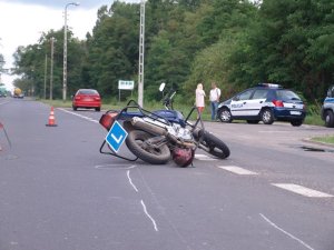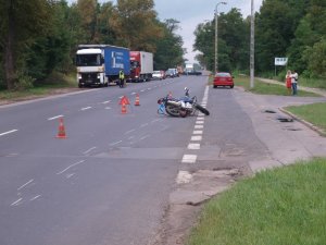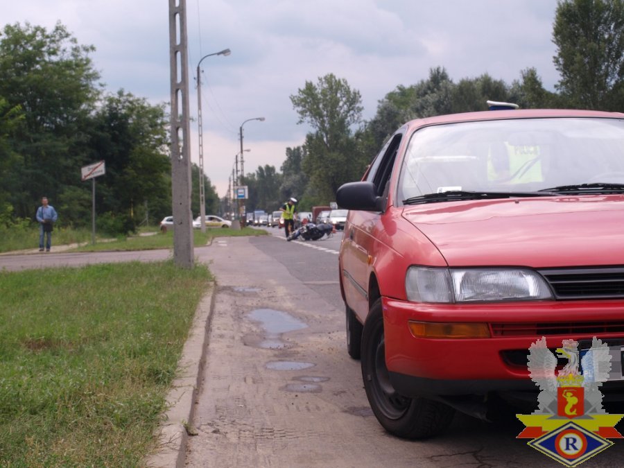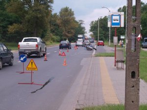 W dniu dzisiejszym, w godzinach przedpołudniowych doszło do wypadku drogowego z udziałem kursanta nauki jazdy na motocyklu. Jadący ul. Marywilską za instruktorem (z osiemnastoletnim doświadczeniem) kursant przewrócił się na wysokości posesji nr 38. Po nodze motocyklisty przejechała jadąca za nim kierująca samochodem marki Toyota. Motocyklista w wieku 23 lat przebył już cały cykl szkoleniowy i "wyjeżdżał" godziny dodatkowe przed egzaminem. Z obrażeniami ciała został przewieziony do szpitala.