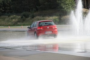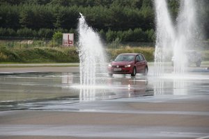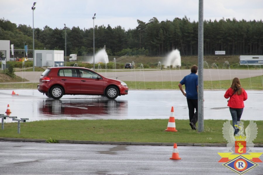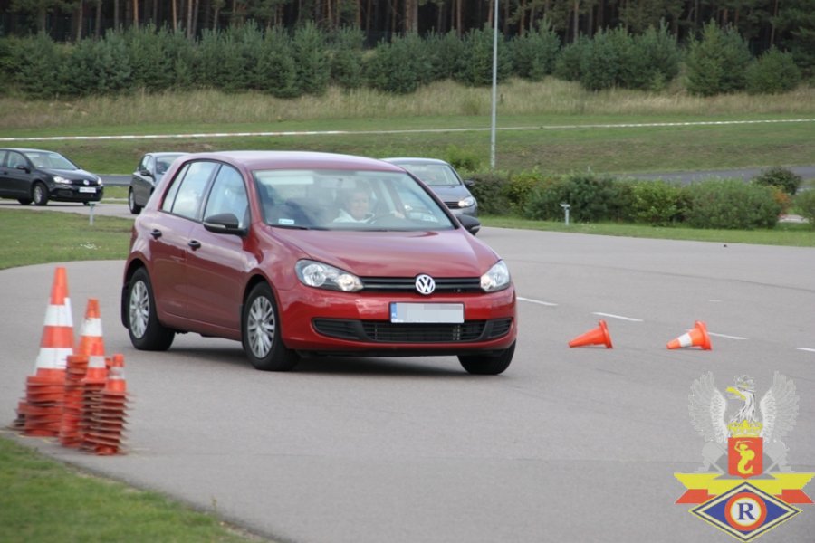 Jazda samochodem osobowym to m. in. jazda slalomem, gwałtowne hamowanie, hamowanie na śliskiej nawierzchni, hamowanie i utrzymanie toru jazdy, omijanie przeszkody w trudnych warunkach drogowych.