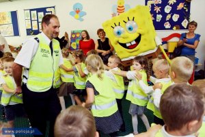 Policjanci warszawskiej "drogówki" rozpoczęli rok szkolny razem z dziećmi pod szkołami. Podczas akcji "Bezpieczna droga do szkoły" przypominali przede wszystkim kierowcom o zakończeniu wakacji. Teraz udają się do szkół i przedszkoli, aby przypomnieć najmłodszym uczestnikom ruchu drogowego jak bezpiecznie dotrzeć do szkoły i wrócić do domu. Z pomocą przychodzi im SpongeBob Kanciastoporty, który prezentuje dzieciom na ekranie zasady bezpiecznego zachowania na drodze i w jej pobliżu. Zgodnie z piosenką śpiewaną przez dzieci na zakończenie zajęć: